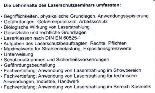 Um die Sicherheit unserer Zuschauer während der Show zu gewährleisten, sind wir entsprechend als Laserschutzbeauftragter ausgebildet!